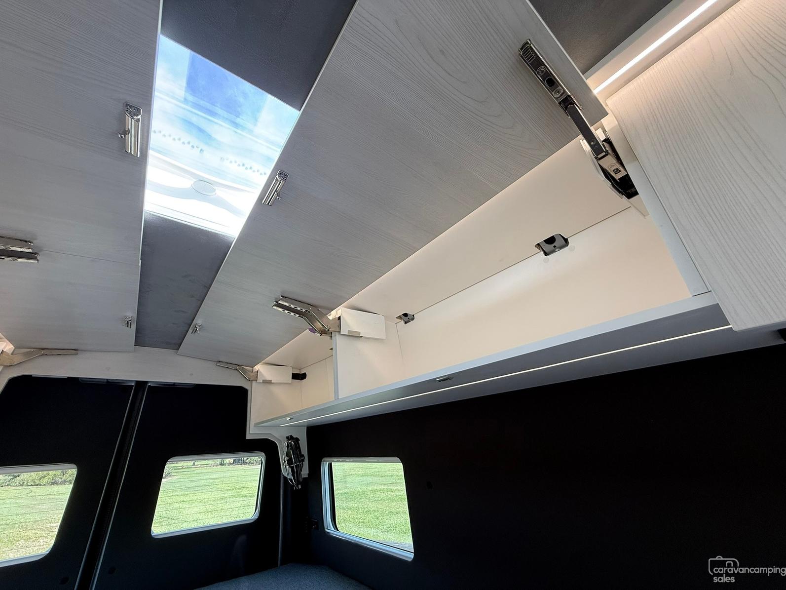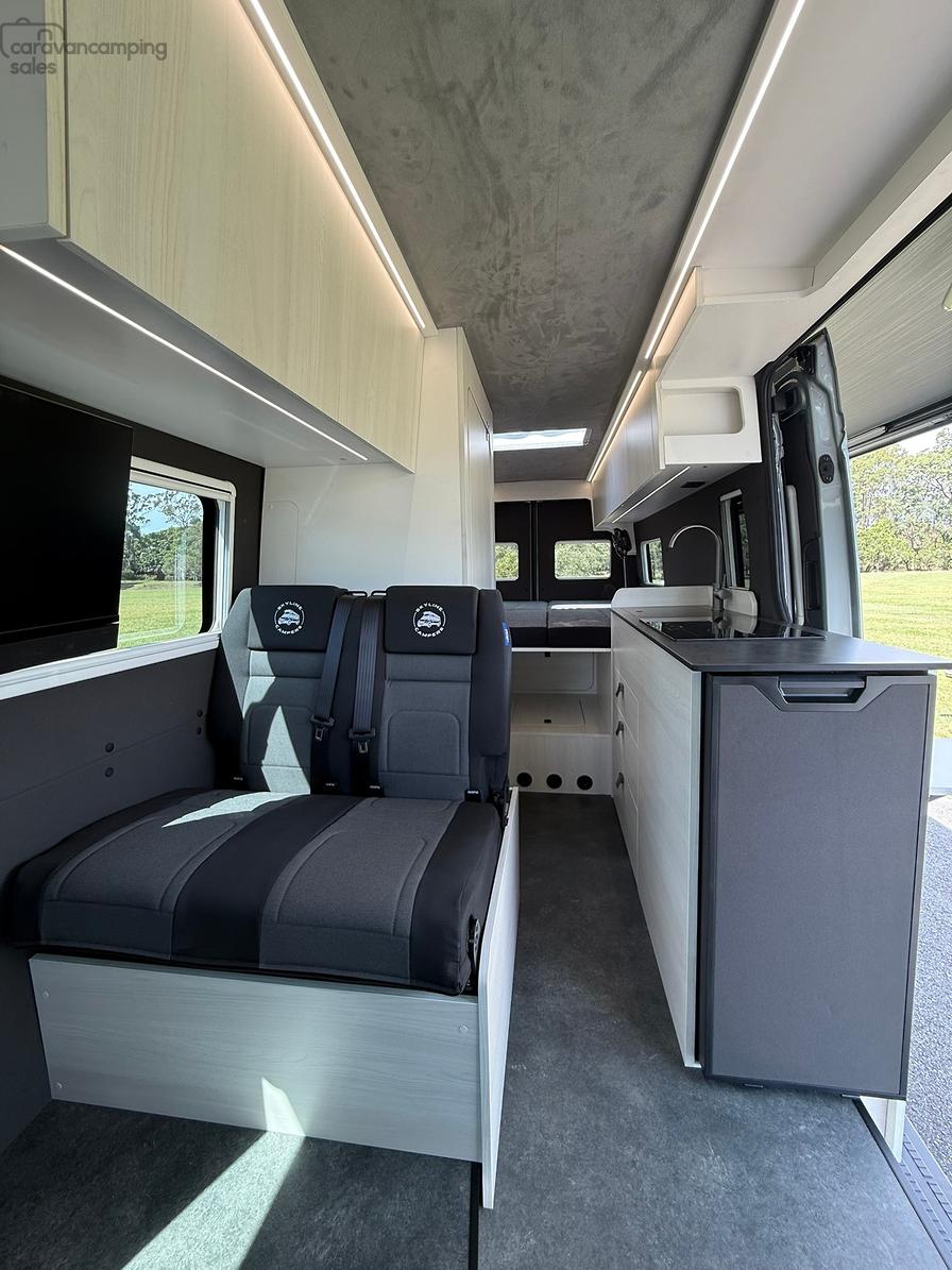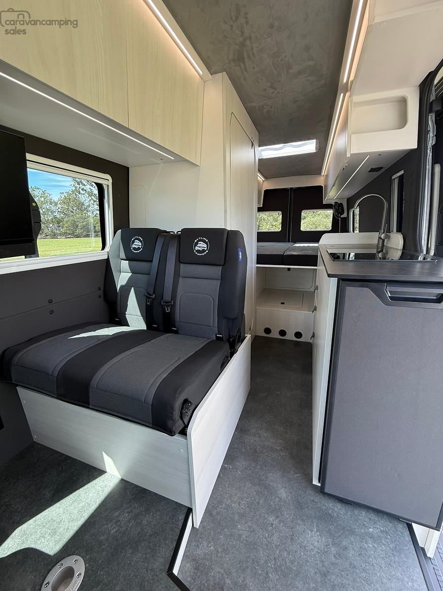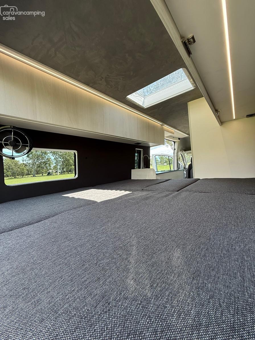 Personalisation is available for all new builds with different interior colour selections for Laminate/Floors/Roof Liner/Side Paneling/Benchtops/Bed Fabric to really make the van yours!