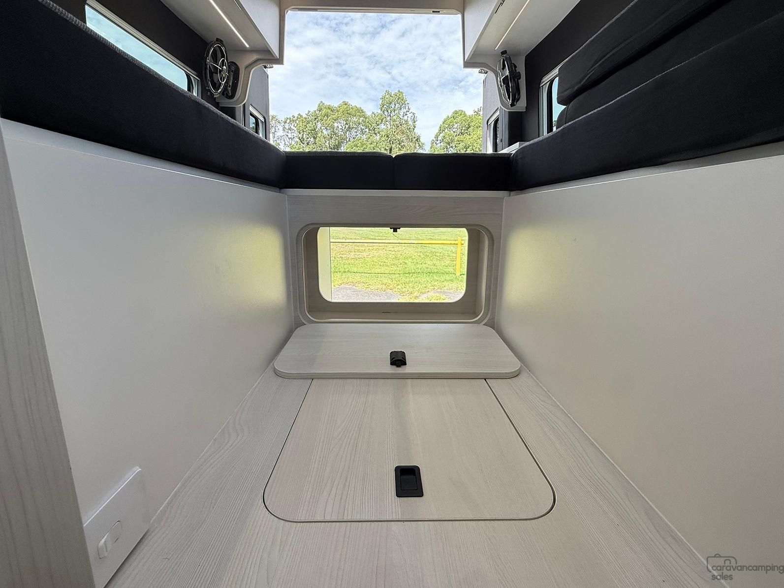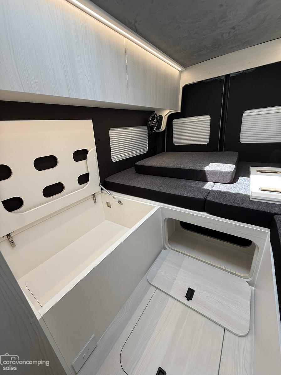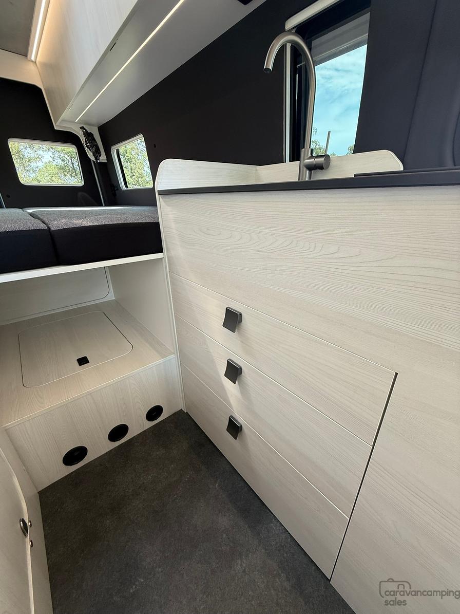 Personalisation is available for all new builds with different interior colour selections for Laminate/Floors/Roof Liner/Side Paneling/Benchtops/Bed Fabric to really make the van yours!