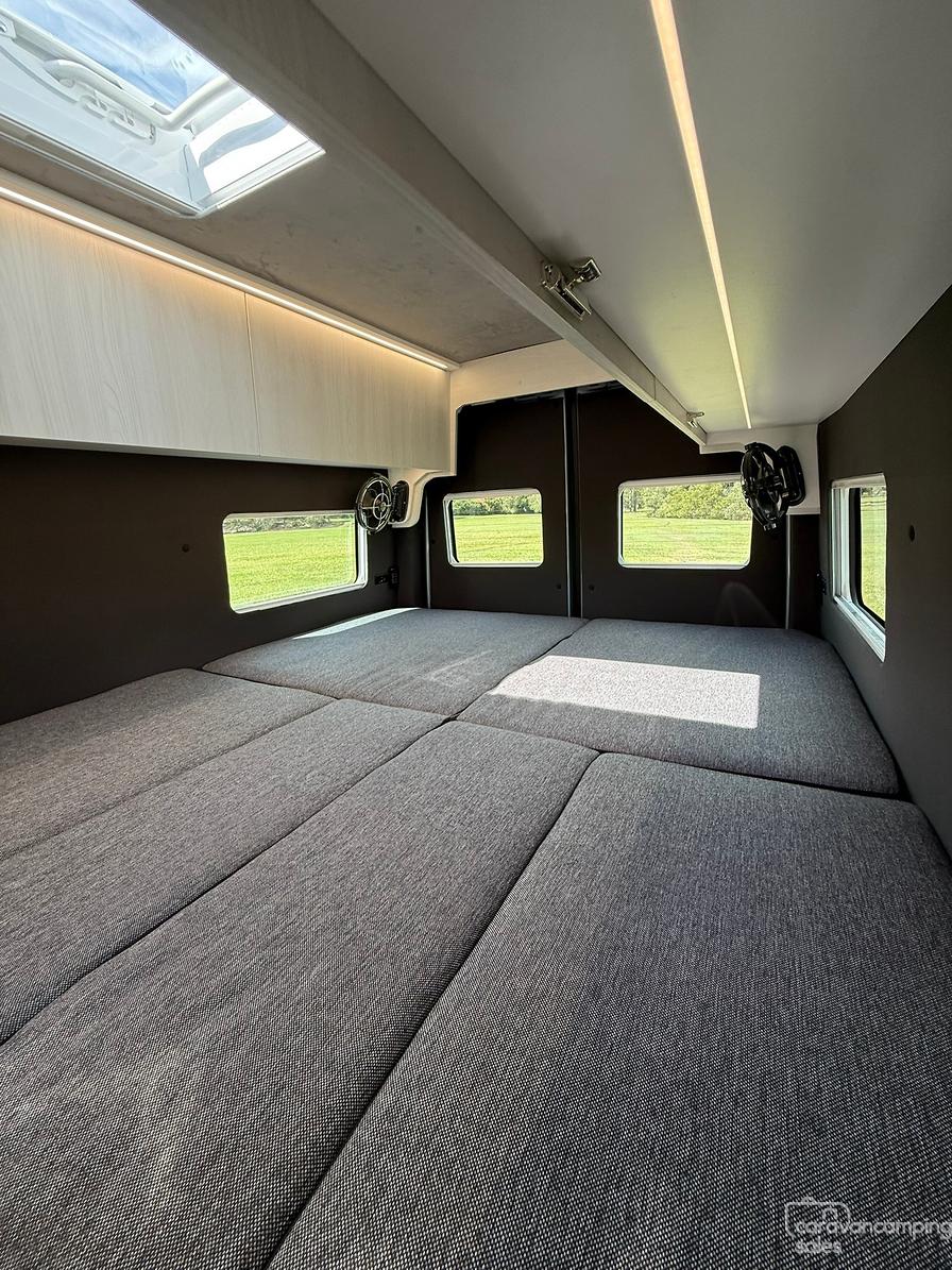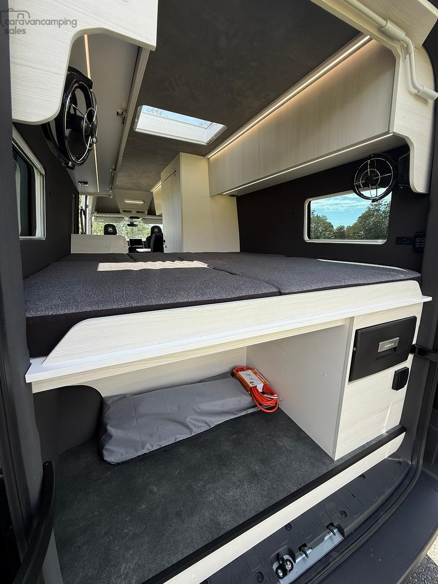 This is our ultimate vision of what a modern, off-grid-capable motorhome should be — packed with premium features, built for comfort, and ready for serious adventure. The specs of this van have to be seen to be appreciated.. 942ah Smart Lithium, 690w Solar, 4.2T GVM and 190L of fresh filtered water just to name a few!