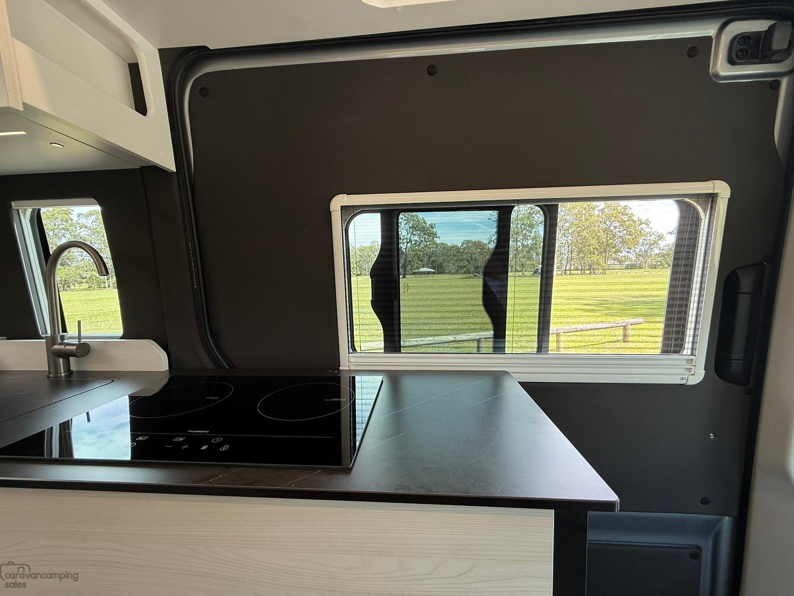 – 2300w Dometic induction stove and 900w Sphere Microwave